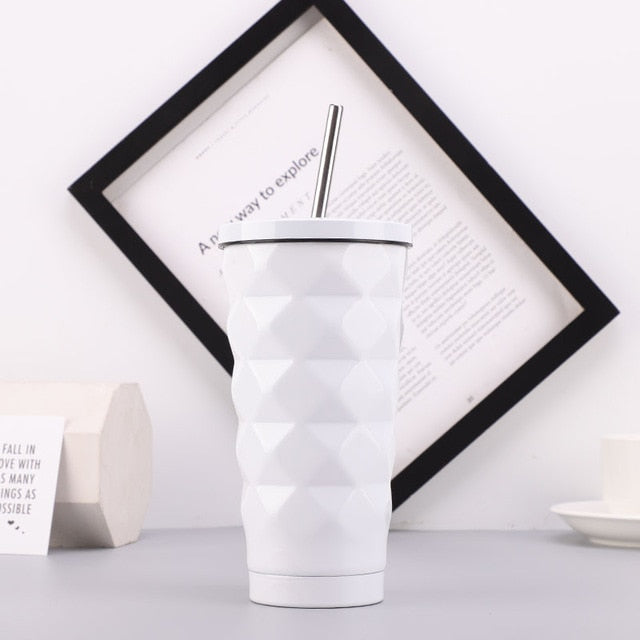- Suitable for hot and cold beverages and includes a reusable straw